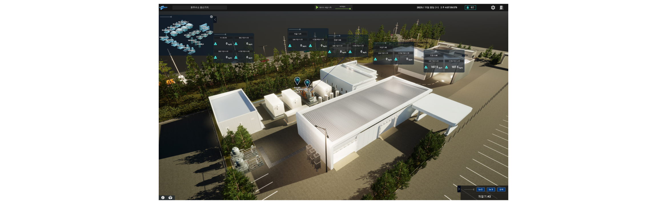 A digital twin of a hydrogen megastation, developed as part of a national energy project in Korea.