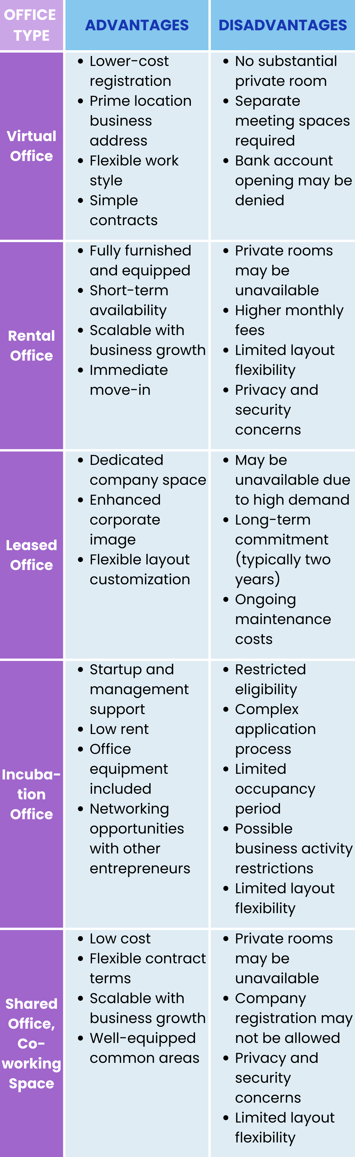 2-1. Advantages and Disadvantages of Each Office Type